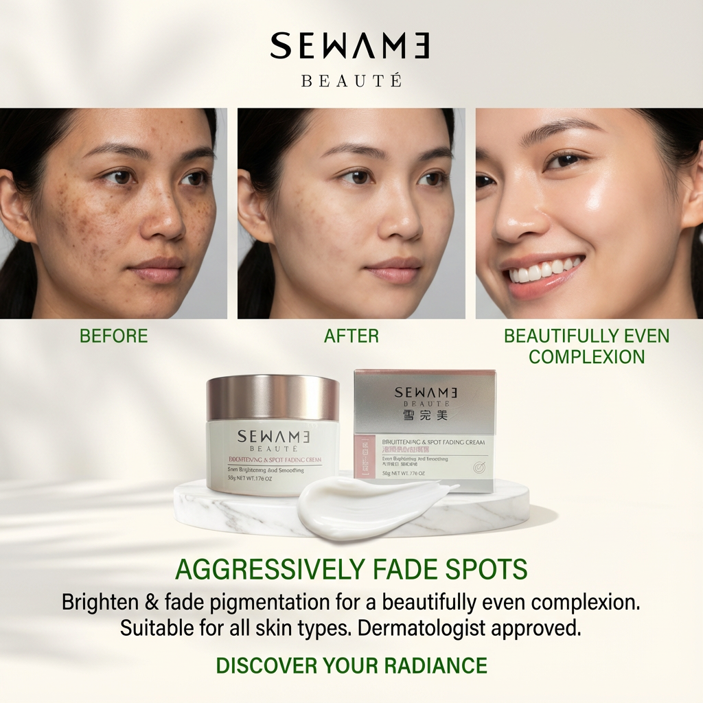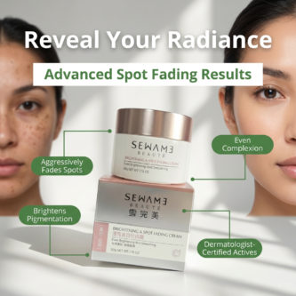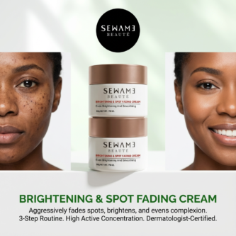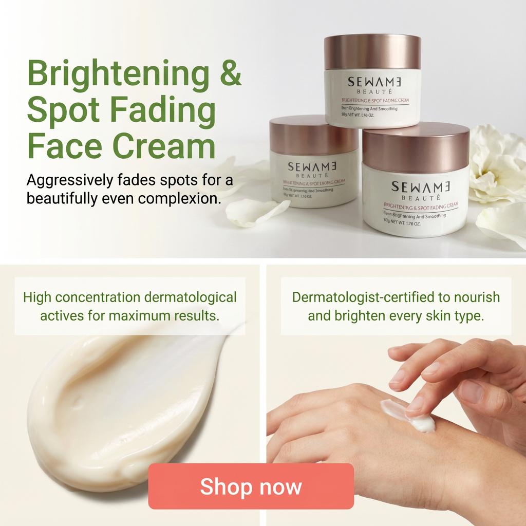 Sewame Brightening & Spot Fading Face Cream is your solution for radiant and even-toned skin! This  cream is specially formulated to target and diminish the appearance of dark spots and hyperpigmentation, while promoting a brighter, more luminous complexion. Enriched with powerful antioxidants and skin-loving ingredients, it works to gently exfoliate and smooth the skin’s surface, leaving it soft, supple, and glowing. Ideal for all skin types, this cream not only brightens but also hydrates and nourishes, ensuring a healthier and more vibrant look. Embrace your natural glow with our Brightening & Spot Fading Face Cream and transform your skincare routine today